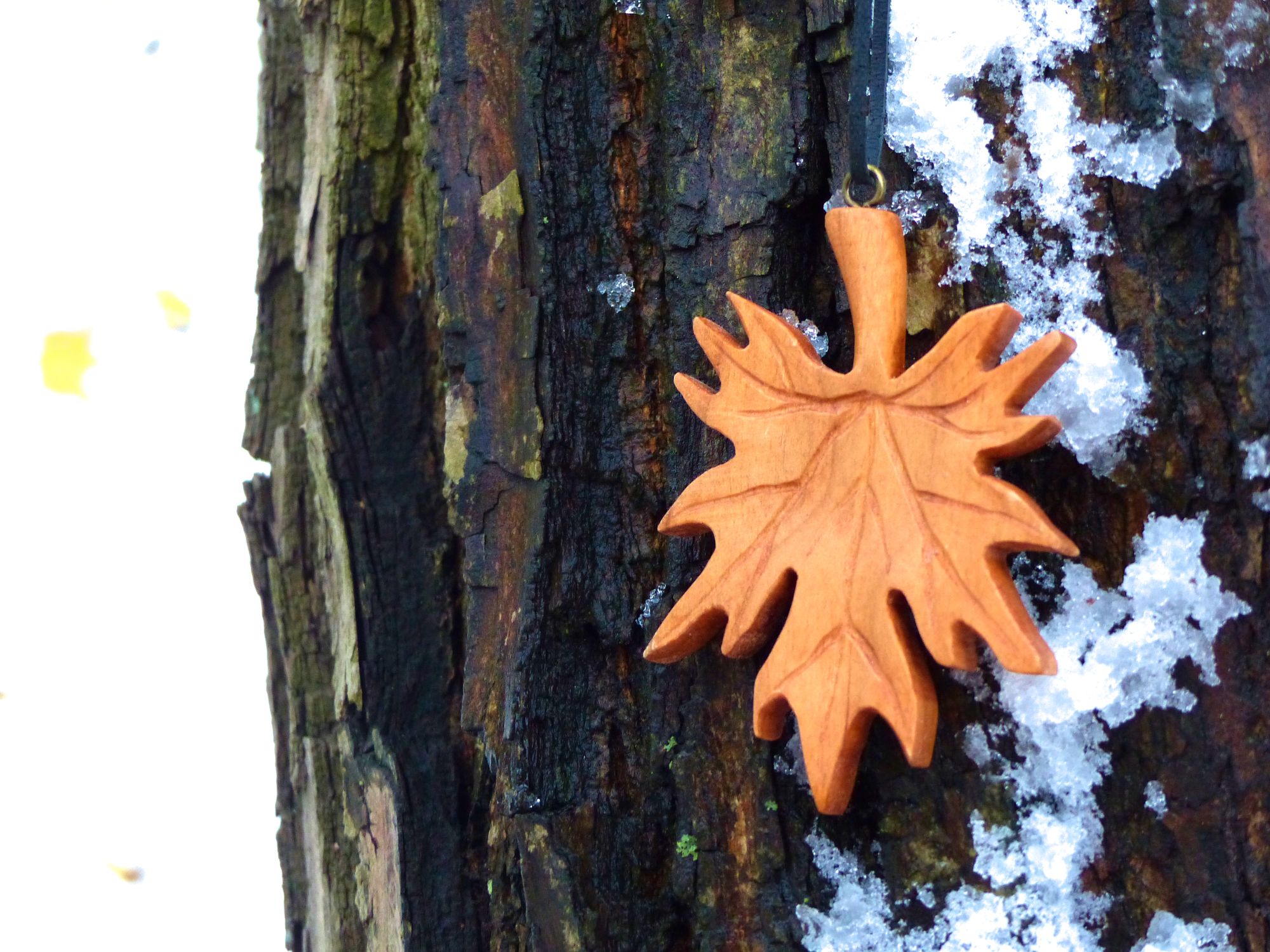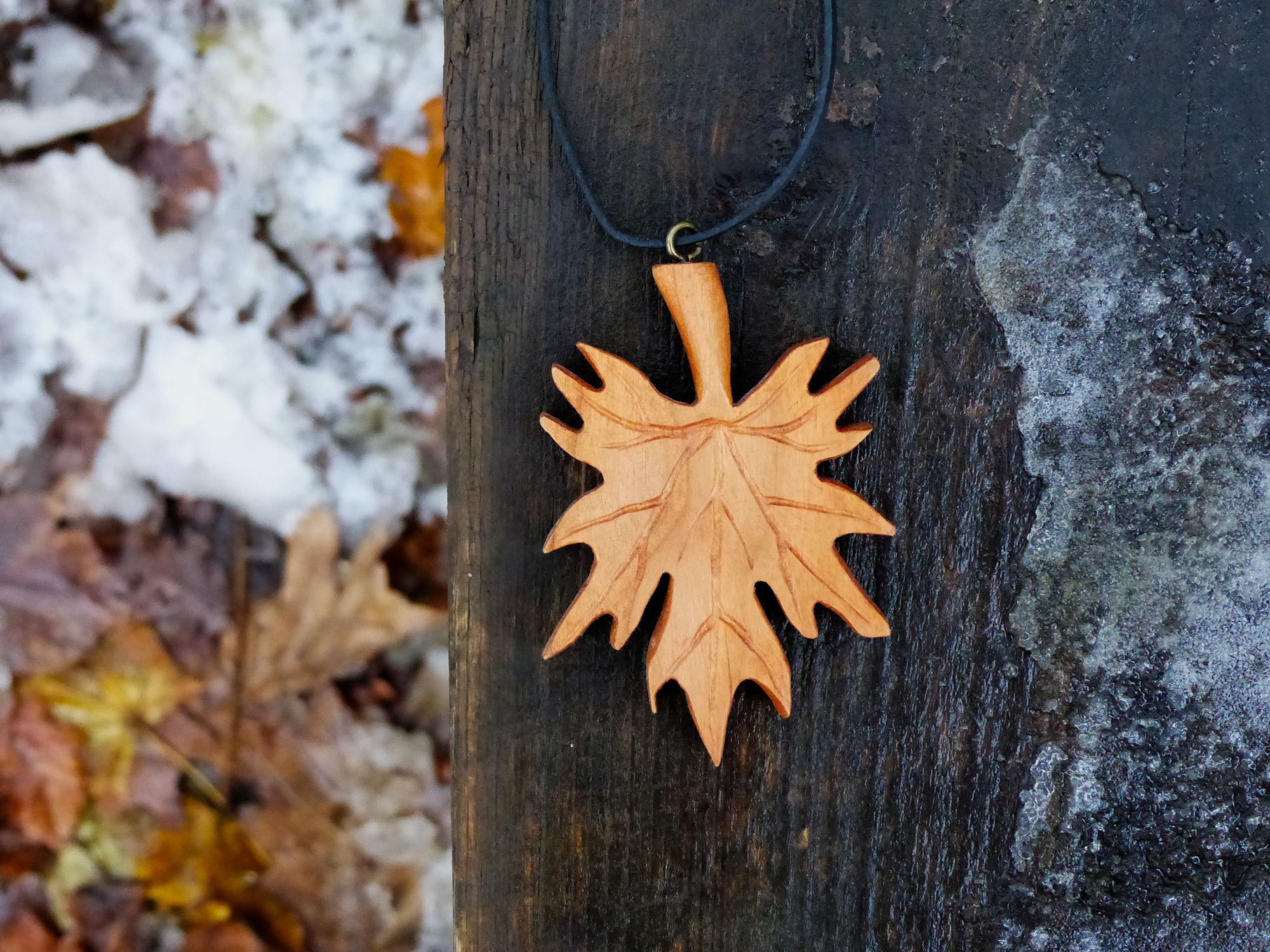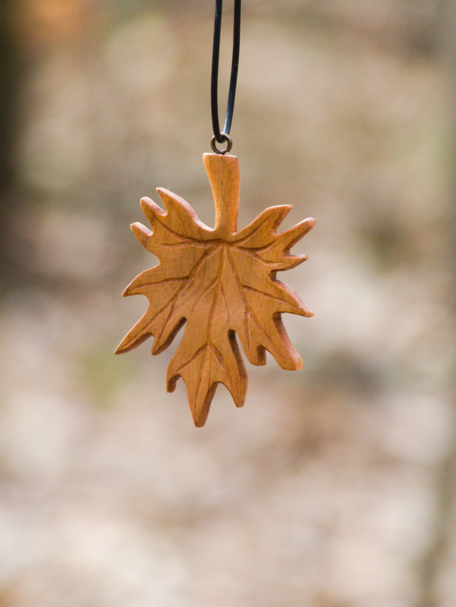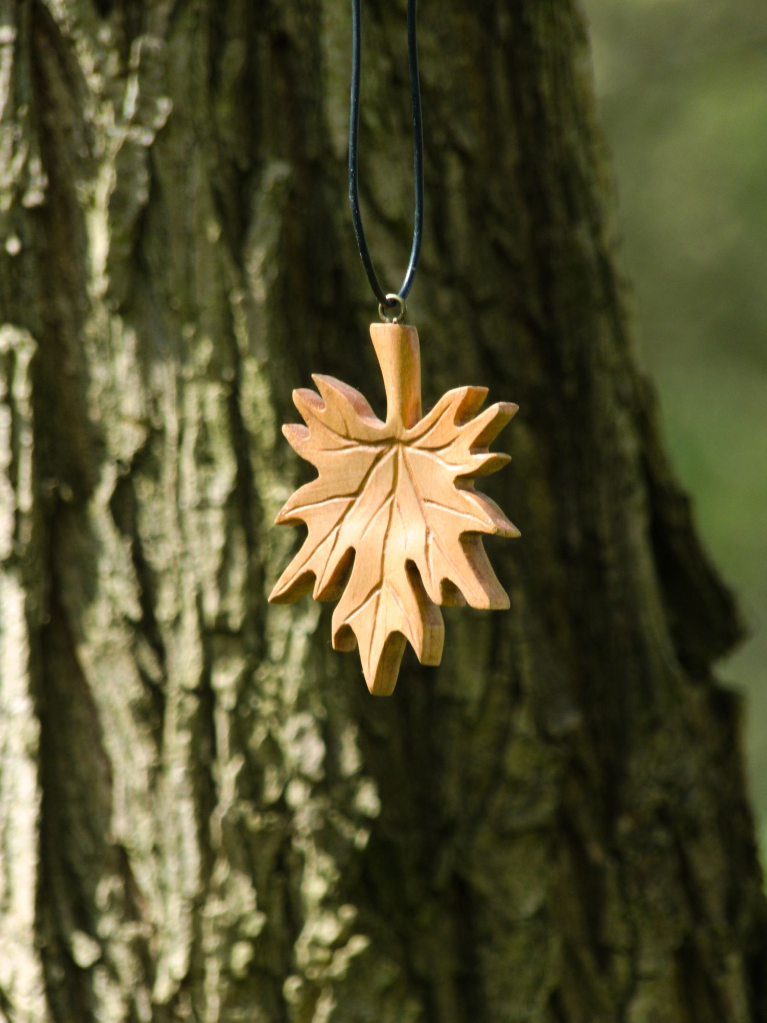 Zatrzymany w drewnie oddech jesieni. Liść klonu – symbol przemijania, wdzięczności i piękna ostatniego światła. Ten ręcznie rzeźbiony wisiorek powstał z naturalnego drewna czereśniowego i wykończony został roślinnym woskiem, by zachować ciepło i blask natury. „Czerwony Listopad” przypomina o tym, że każda przemiana niesie w sobie spokój, a każde opadłe liście – obietnicę odrodzenia.