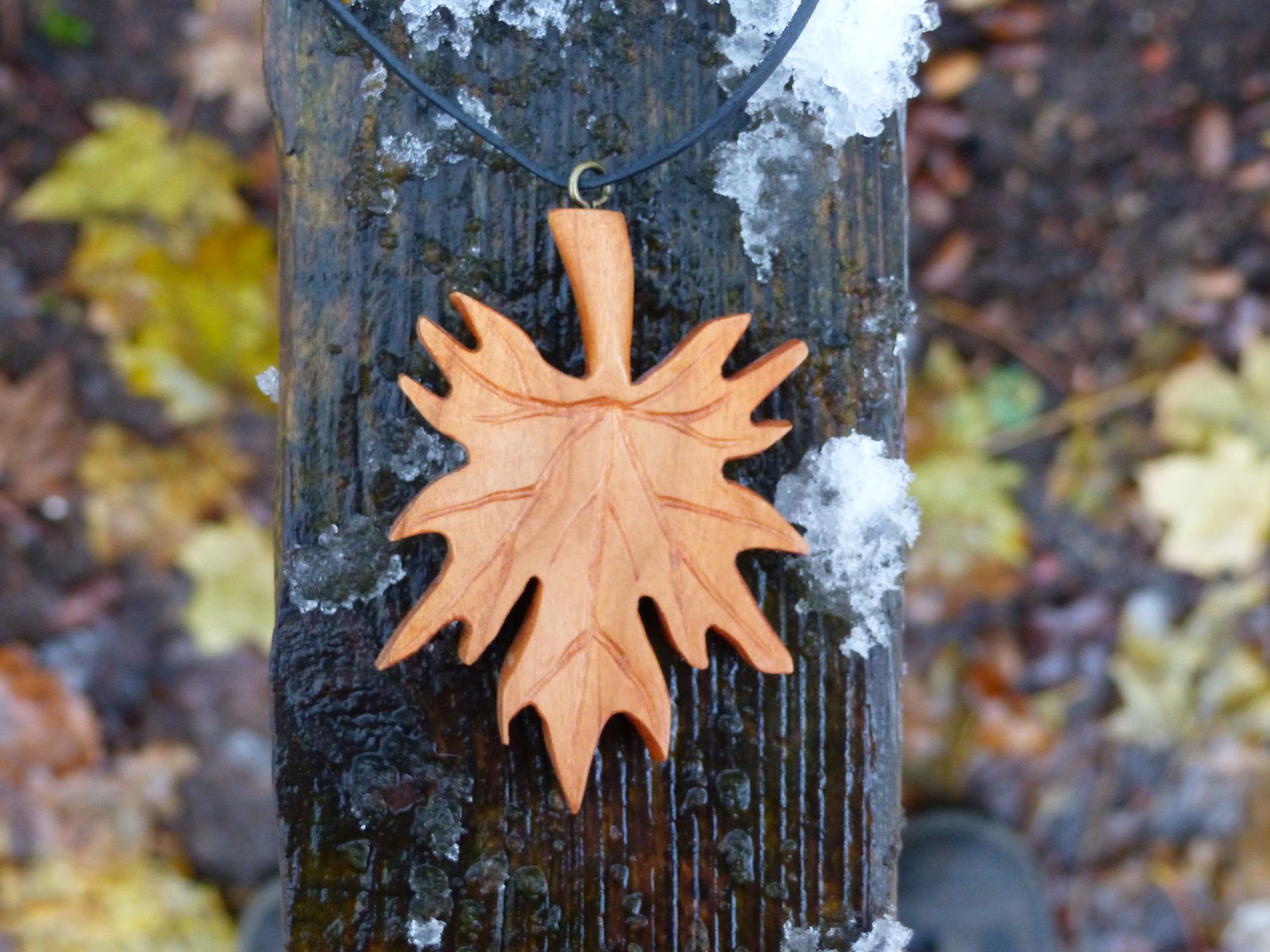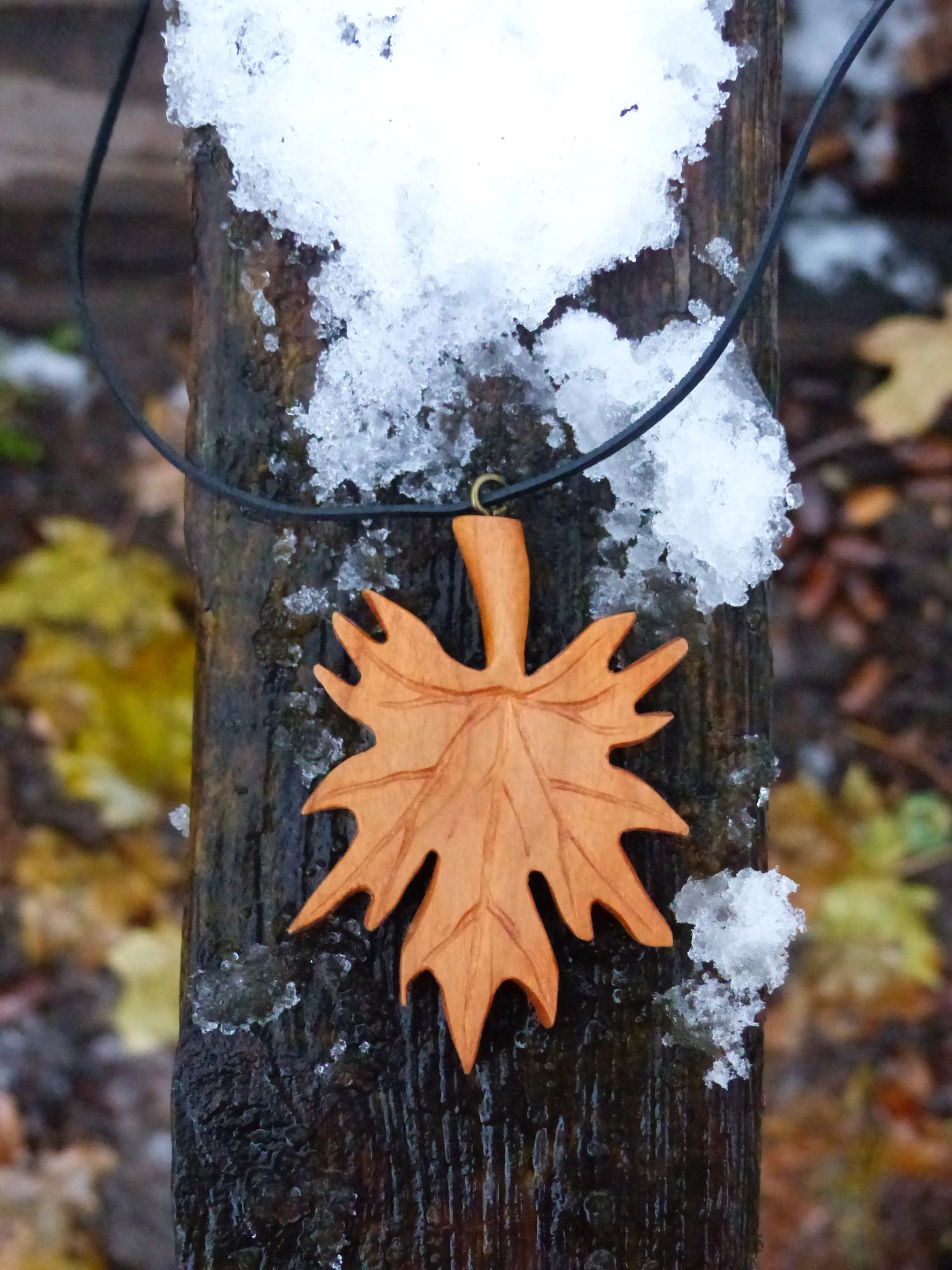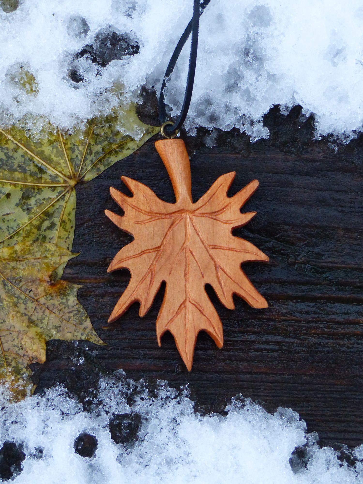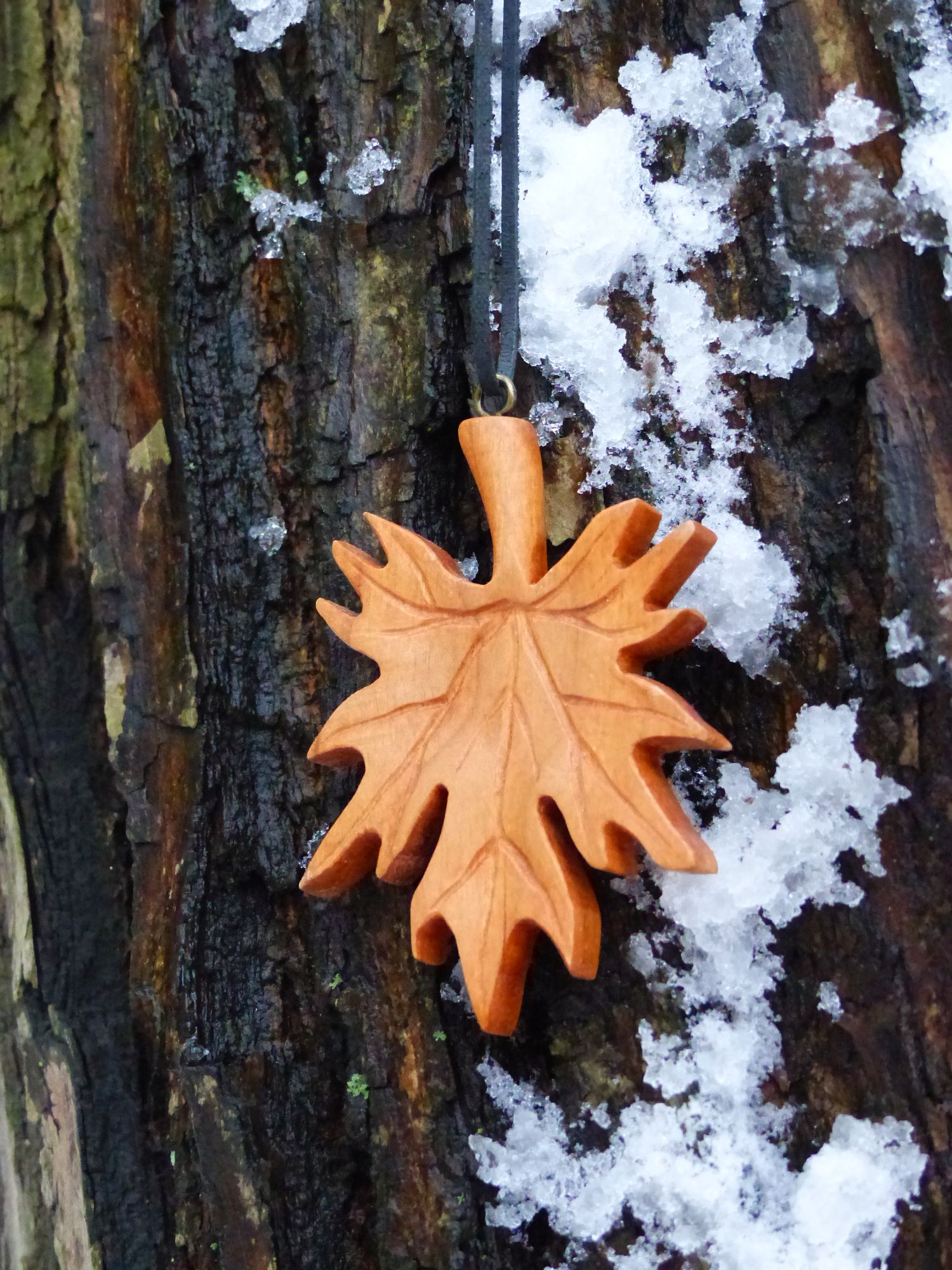Zatrzymany w drewnie oddech jesieni. Liść klonu – symbol przemijania, wdzięczności i piękna ostatniego światła. Ten ręcznie rzeźbiony wisiorek powstał z naturalnego drewna czereśniowego i wykończony został roślinnym woskiem, by zachować ciepło i blask natury. „Czerwony Listopad” przypomina o tym, że każda przemiana niesie w sobie spokój, a każde opadłe liście – obietnicę odrodzenia.