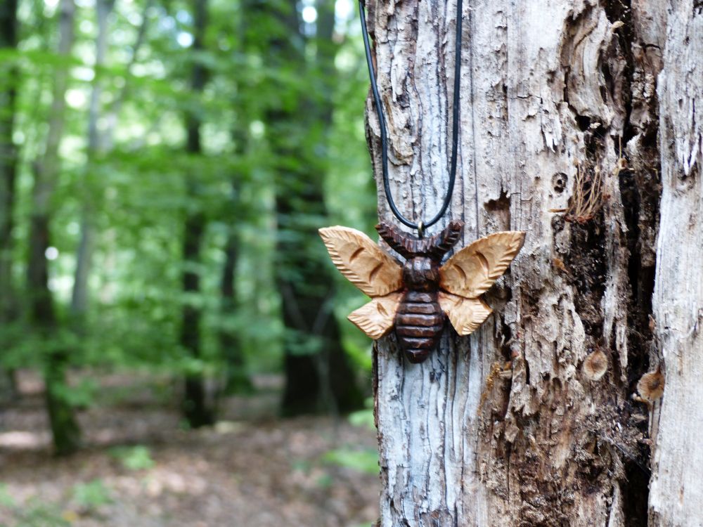 Dodaj odrobinę dzikiego uroku do swojej stylizacji dzięki ręcznie rzeźbionemu wisiorkowi w kształcie ćmy – idealny dla miłośników przyrody, fanów owadów i tych, którzy szukają unikalnej, pełnej symboliki biżuterii.