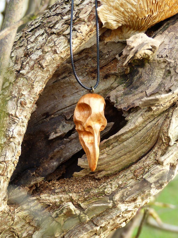 Dla miłośników tajemnicy, magii i mrocznego piękna – ten ręcznie rzeźbiony wisiorek w kształcie czaszki kruka to hołd dla mądrości, przemiany i niezwykłości natury. Wykonany z drewna czereśni, wykończony naturalnym olejem i woskiem – idealny dla tych, których pociąga symbolika i niezwykły styl.